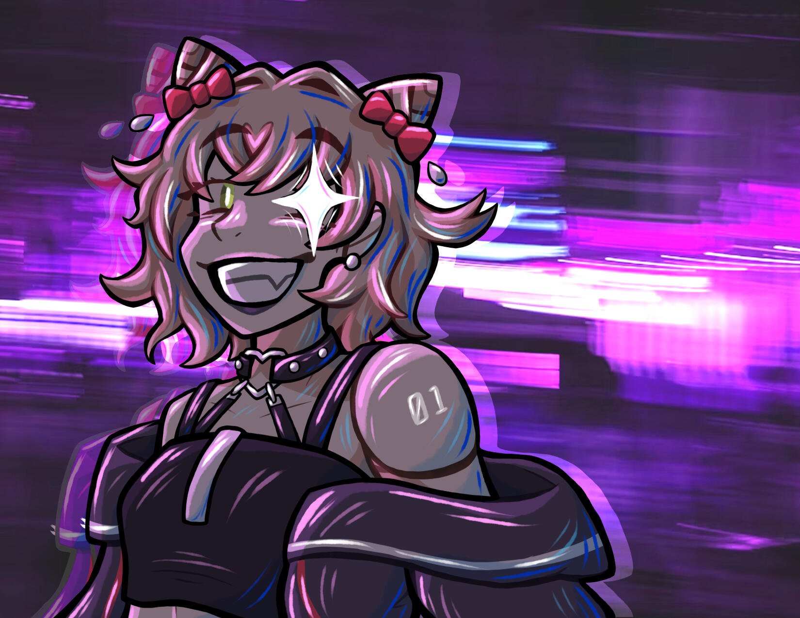 A more experimental style! Typically lineless, but with more complex shading and effects, usually in bright, contrasting colors -- whatever feels "right" in the moment. These are a bit more "free-reign" than the standard options. As such, my pricing for these is a lot less set and stone, and will require discussion upfront. A bust would start at $25, or a half-body at $30.background cost is dependent on complexity and will be determined on a case-by-case basis.